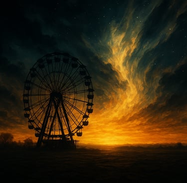 The ferris wheel has stopped. The conductor opens the carriage door, and you get in — there’s no seatbelt on this one.